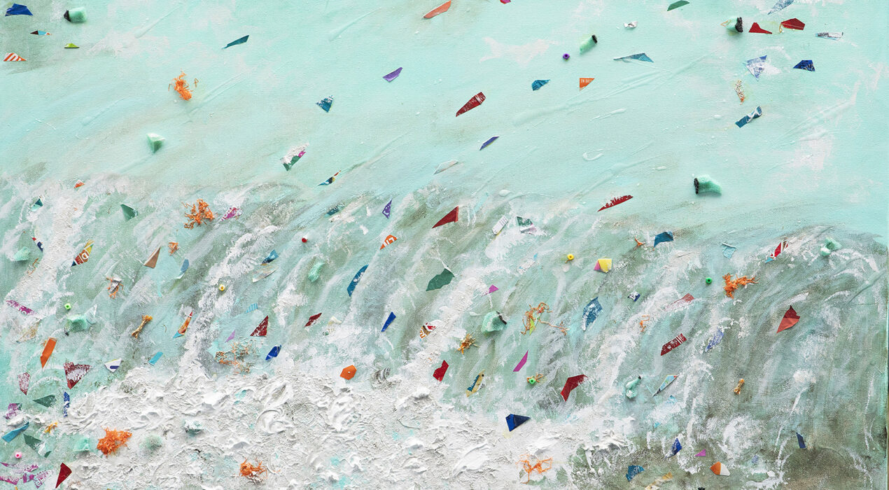 Acrylverf, marmerpoeder, plastic afval, epoxyhars