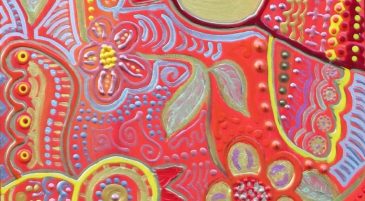 Acrylverf met gouden metalic accenten